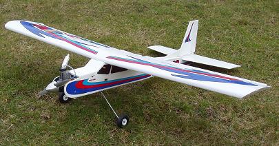 Da jeg først havde besluttet mig for at skulle flyve med R/C modeller kunne det ikke gå hurtigt nok, så derefor købte jeg denne ARF Trainer. Det tog 3 timer at klargører den. En meget godmodig flyver. Oprindeligt var den udstyret med næsehjul, men det var meget blødt, så den blev hurtigt modificeret til haleslæber.